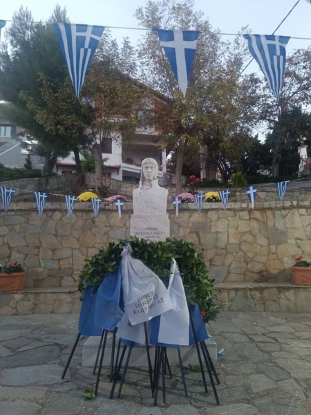 Ο υποσμηναγός Ιωάννης Σακελλαρίου κυνηγάει με πάθος ένα ακόμη ιταλικό αεροπλάνο και το ρίχνει συντρίμμια στην γη. Τότε μανιασμένο το σμήνος των Ιταλών κυκλώνει τον Έλληνα αετό. Δεν έχει όμως άλλα πυρομαχικά ο δικός μας. Μισή ώρα δίνει μάχη στους αιθέρες.Διώξατε μέχρι θανάτου, αντιλαλεί η διαταγή του προς το σμήνος που διοικούσε. Σε κλάσματα δευτερολέπτου αγκαλιάζεται με τον θάνατο. Δεν έχει πυρομαχικά. Έχει όμως το αεροπλάνο του. Ορμάει και πέφτει ακάθεκτος στο εχθρικό αεροπλάνο. Τ' άλλα τρέπονται σε φυγή μπροστά στο πήδημα του θανάτου. Ο Έλληνας υποσμηναγός, αγκαλιασμένος στην συντριβή με τον εχθρό, περνά στην αθανασία...